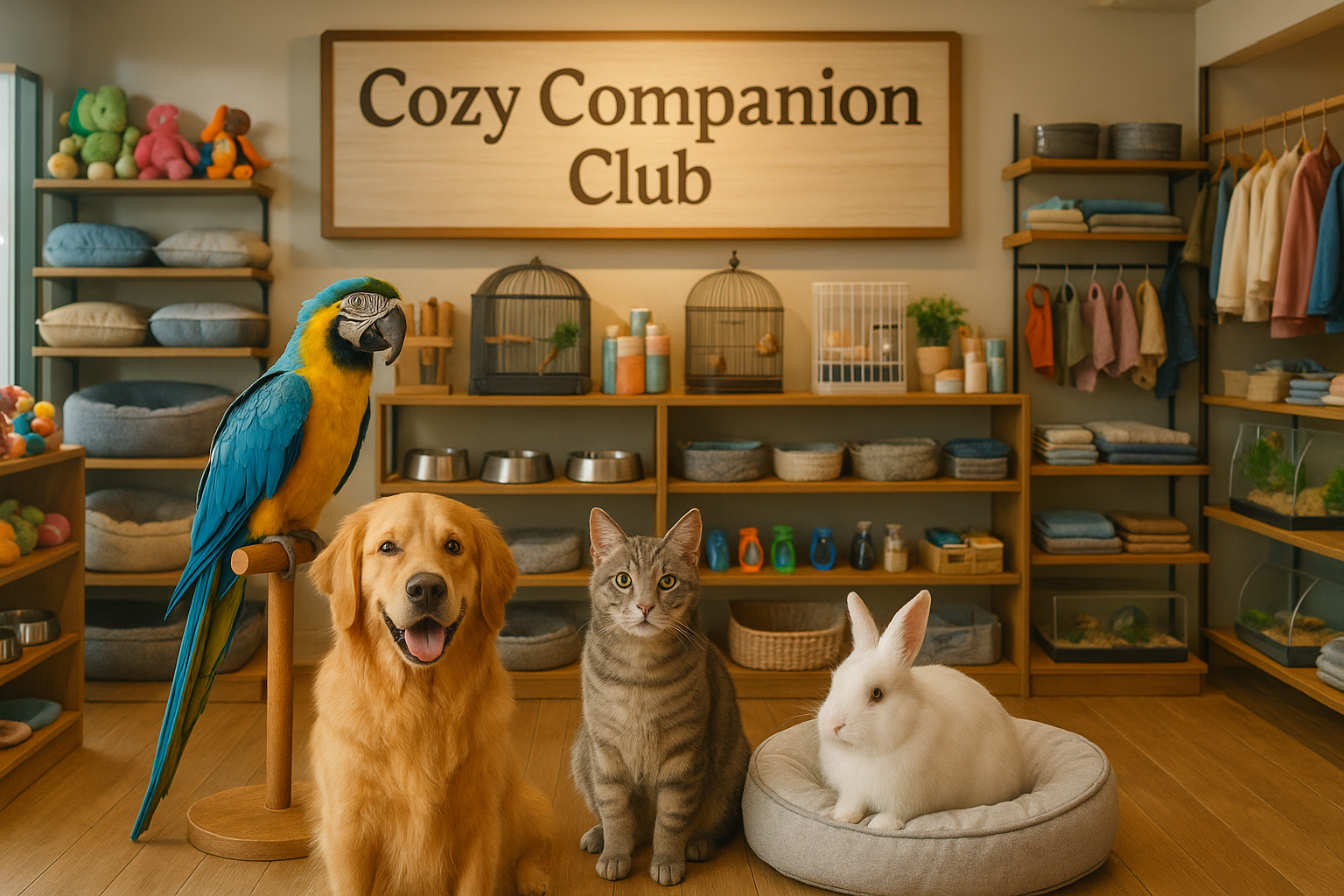 Cozy Companion Club offers Pet Toys, Pet Beds, Pet Feeding, Pet Leashes, Bird Supplies, Small Pet Animals, Pet Clothing, Pet Grooming, Fish Accessories and supplies.